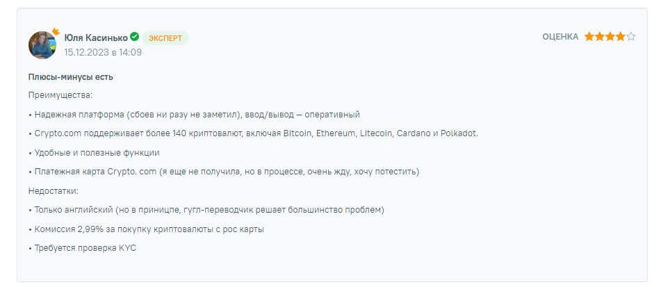 Отзывы о Crypto.com часто отражают различные мнения пользователей относительно её преимуществ и недостатков. Если говорить про выделенные пользователями плюсы, то можно сказать о таких моментах, как: