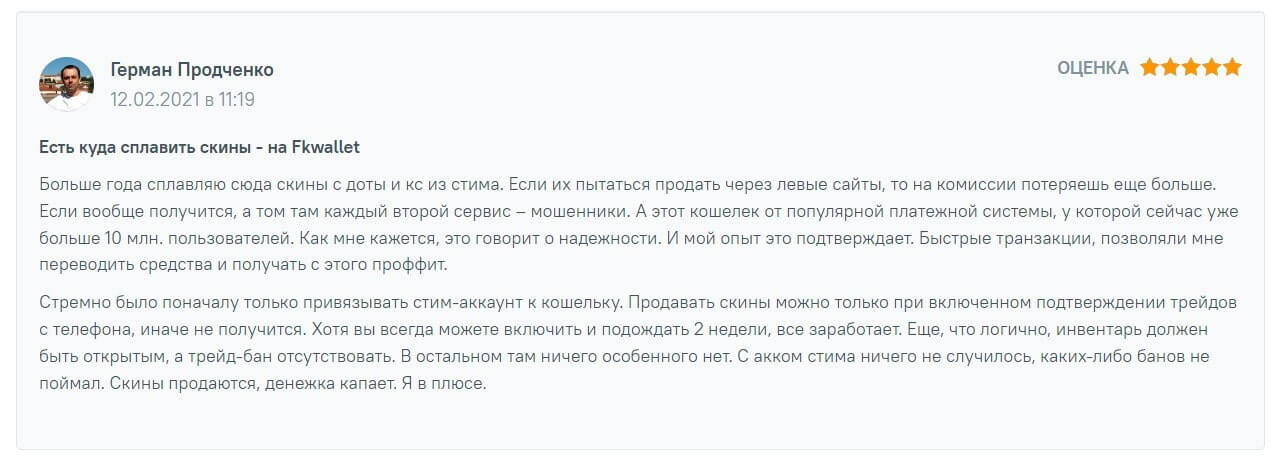 Положительные отзывы клиентов о Fkwallet