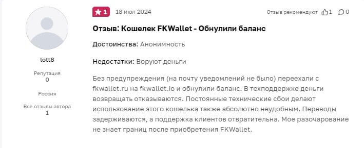Негативные отзывы о кошельке Fk Wallet в России