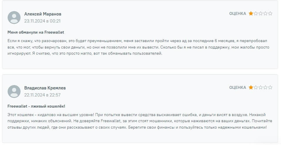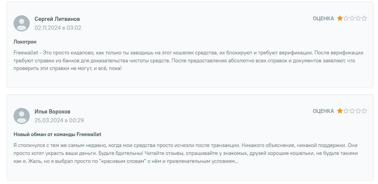 Негативные мнения о Freewallet в России: отзывы пользователей