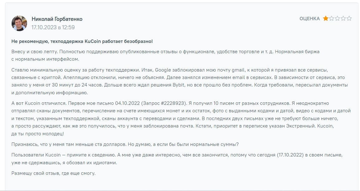 Отрицательные мнения реальных людей о KuCoin из форумов