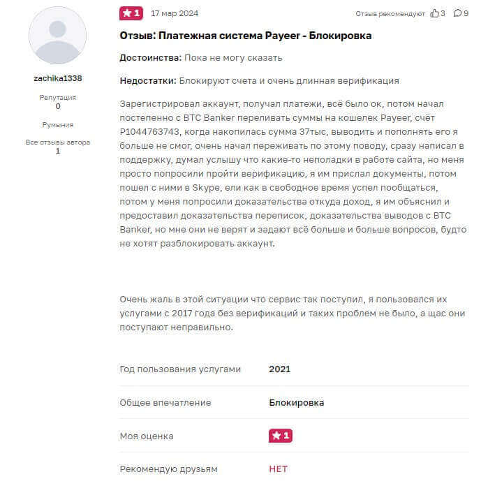 Негативные отзывы пользователей о Payeer