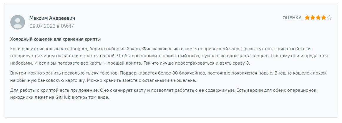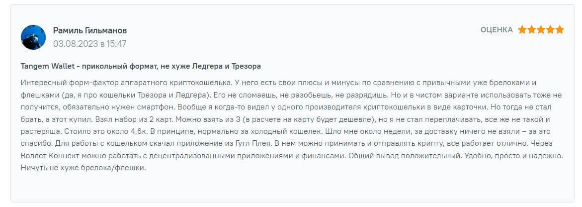 Отзывы подтверждают, что Tangem Wallet успешно сочетает в себе безопасность, удобство и мобильность, делая его одним из лучших выборов на рынке современных кошельков для криптовалют.