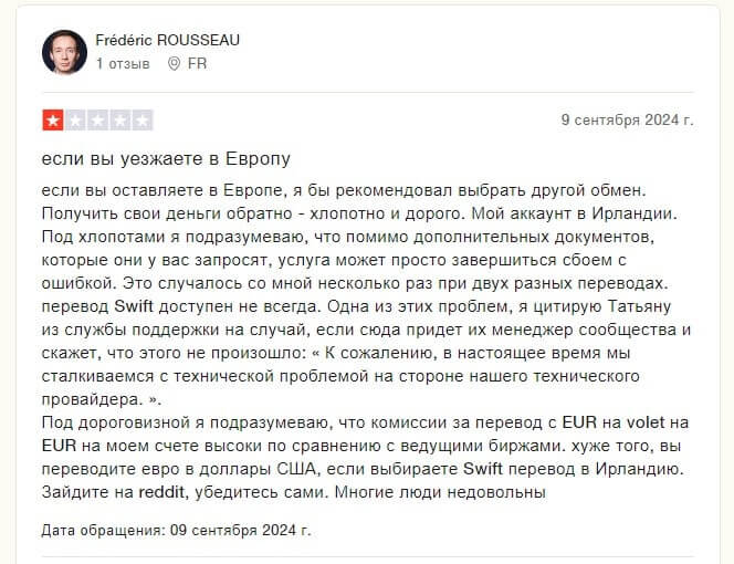 Также критике подвергаются высокие комиссии за транзакции, которые, по мнению пользователей, неоправданно завышены по сравнению с конкурентами. Этот аспект особенно раздражает тех, кто осуществляет многочисленные и небольшие операции, поскольку снижает общую выгоду от использования Volet.