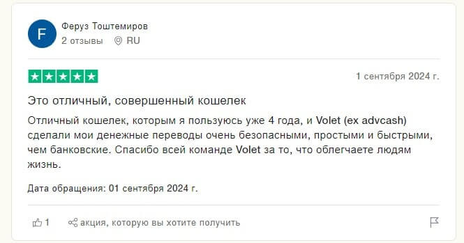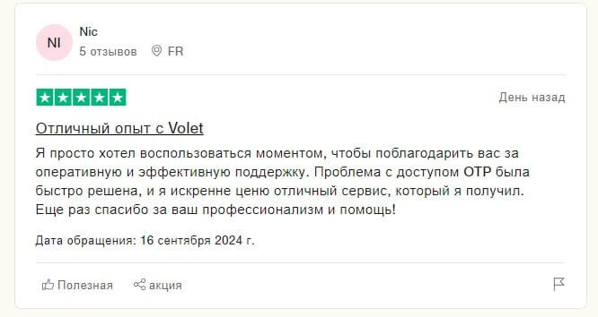 Не менее важным аспектом, который выделяют положительные отзывы о Volet, является низкая комиссия за транзакции. Это делает Volet выгодным инструментом для ежедневного использования. В дополнение, клиентская поддержка всегда на высоте, обеспечивая оперативные и компетентные ответы на любые вопросы.