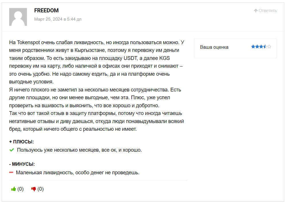 Положительные отзывы Tokenspot от клиентов из России на форумах