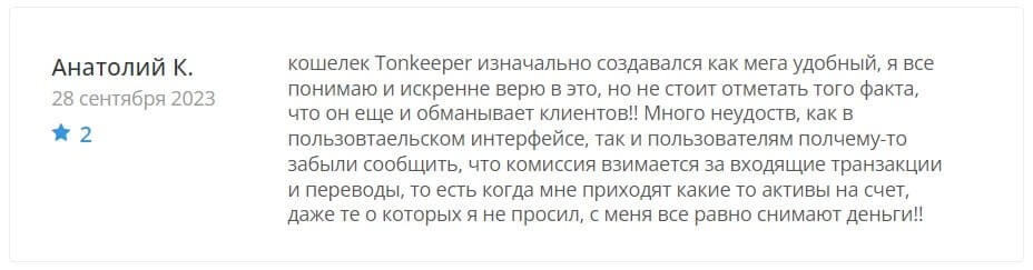 Несмотря на многочисленные положительные отзывы о Tonkeeper, платформа не лишена критики. Некоторые пользователи выражают разочарование по поводу проблем с функциональностью и надежностью приложения.