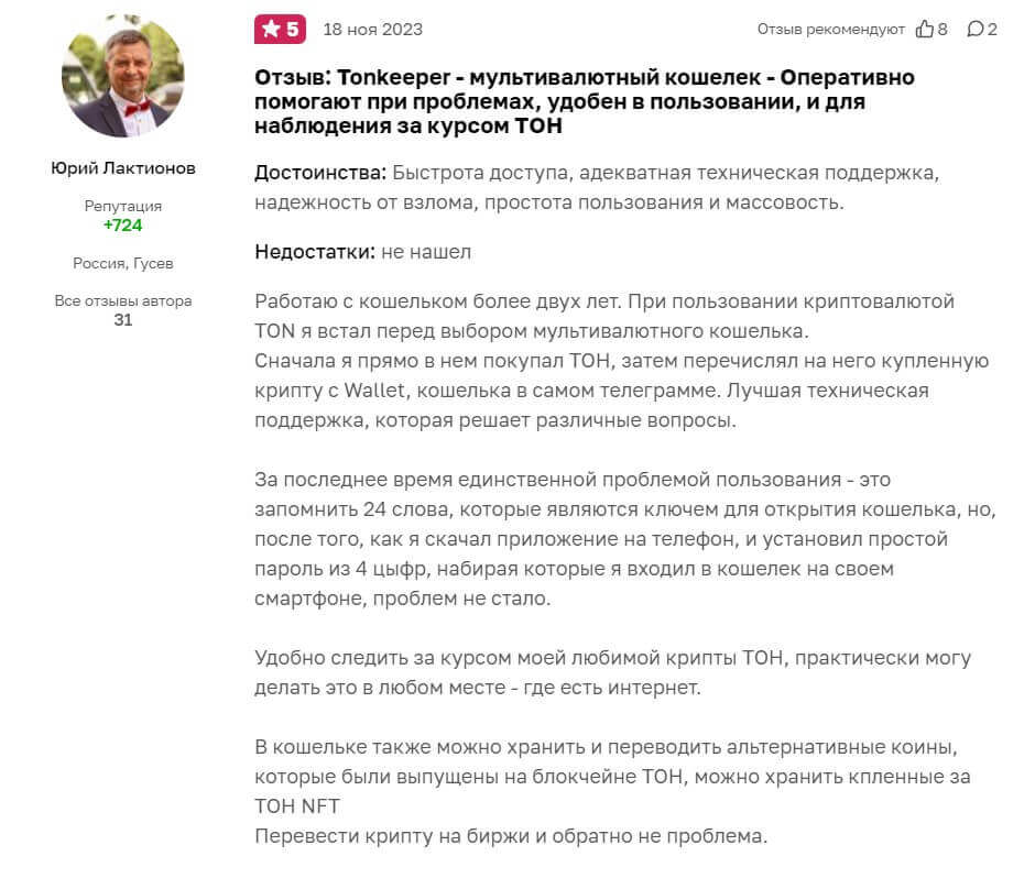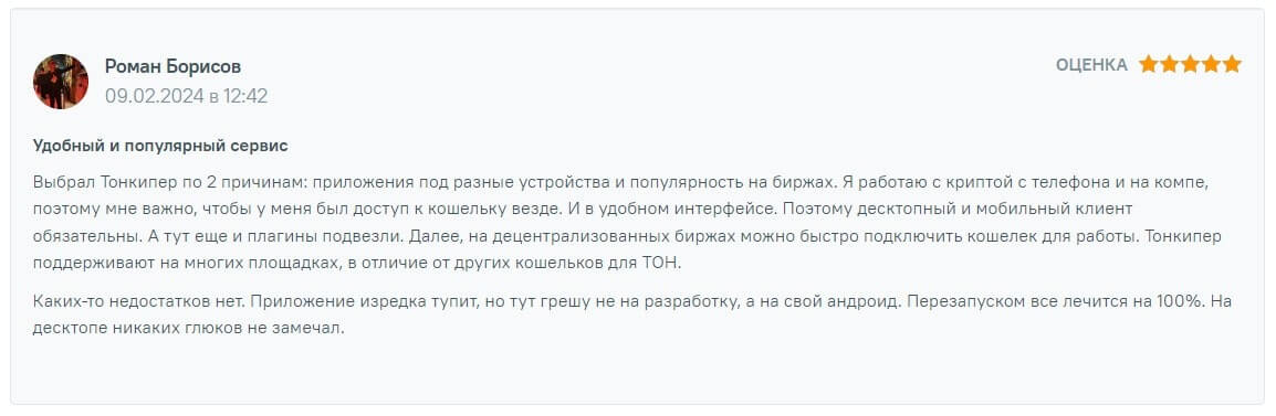 Положительные реальные отзывы клиентов Tonkeeper