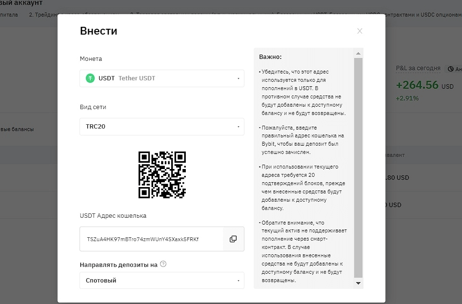 Шаг 1. Получите адрес кошелька ByBit для пополнения