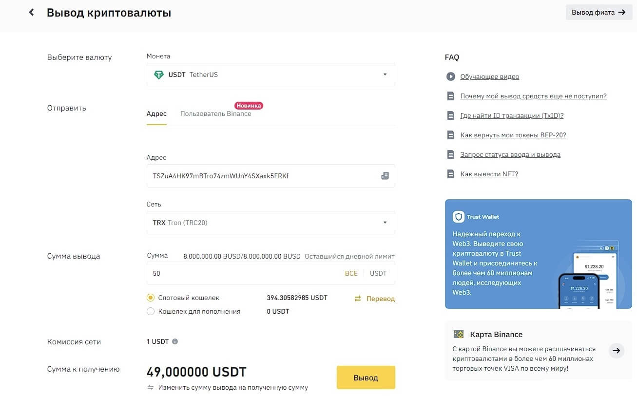 Можно ли вывести деньги на карту из России с Binance в рублях?