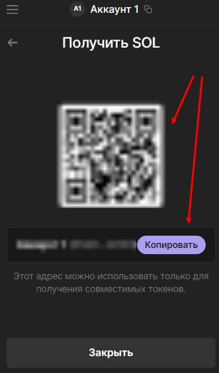 После этого останется лишь скинуть отправителю QR код или адрес кошелька. Именно его нужно будет указать в процессе отправки монет.