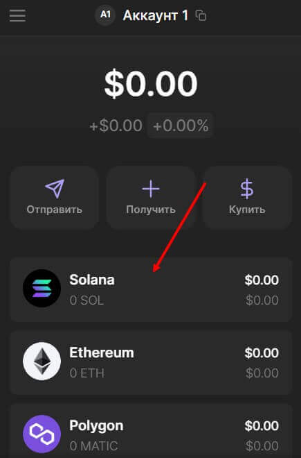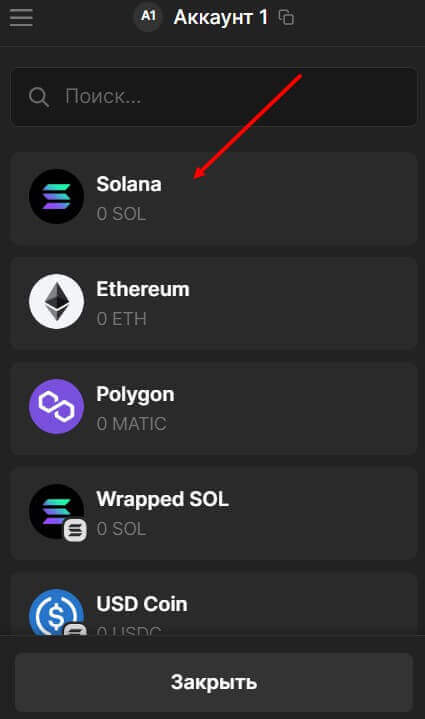 Затем выберите криптовалюту, которую планируете получить. В качестве примера возьмем Solana.