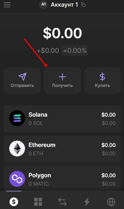 Чтобы пополнить кошелек, нужно перейти в раздел “Получить” и отсканировать или скопировать адрес кошелька и перевести на него необходимое количество монет.