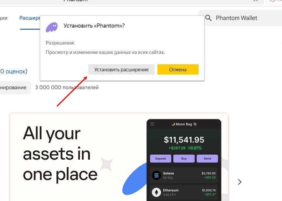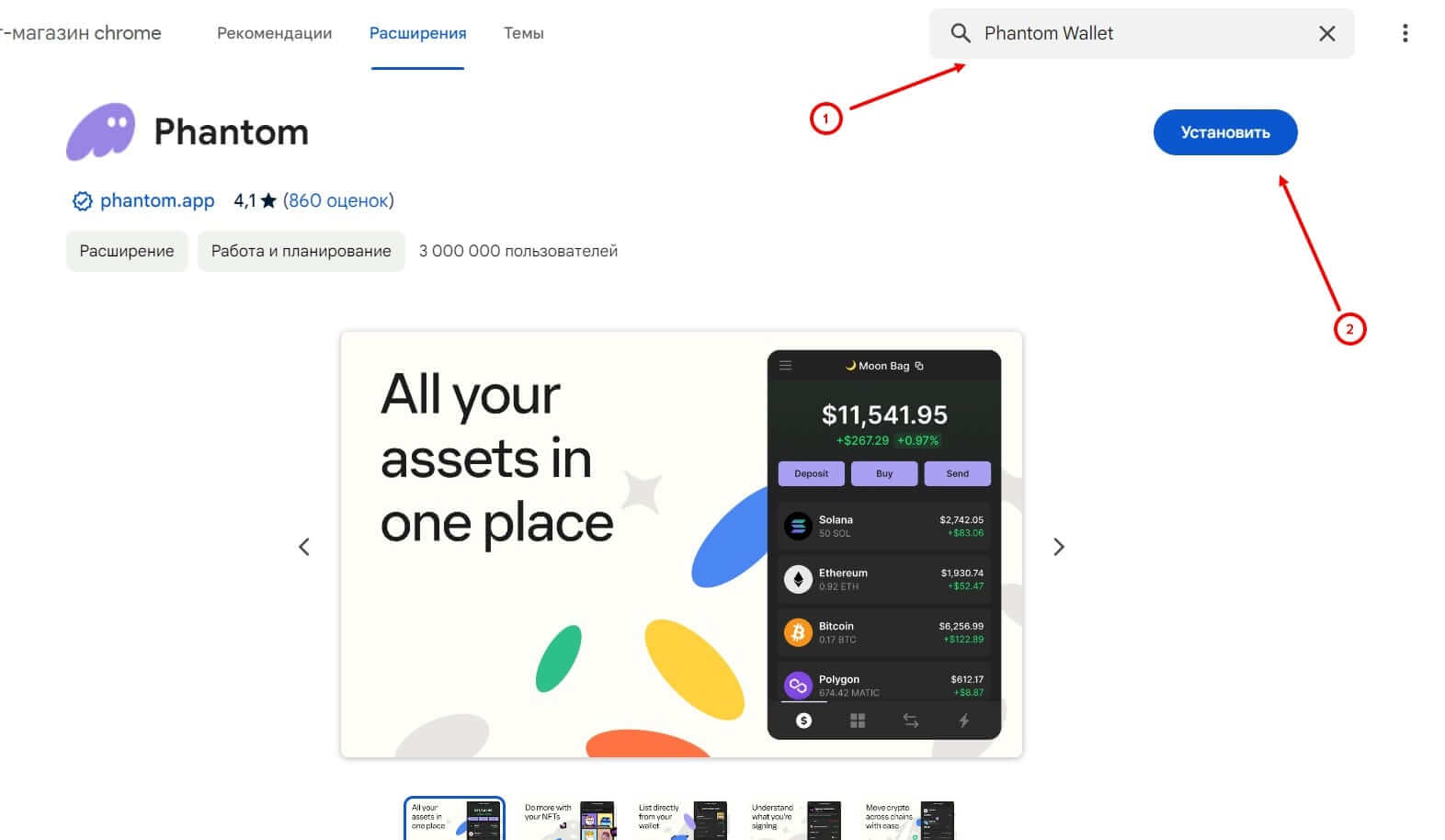 Установка кошелька Phantom Wallet на браузер вашего компьютера происходит следующим образом: