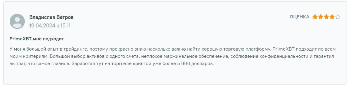 Примечательно, что многие пользователи оставляют положительные отзывы о криптобирже PrimeXBT, подчеркивая ряд важных для себя аспектов.