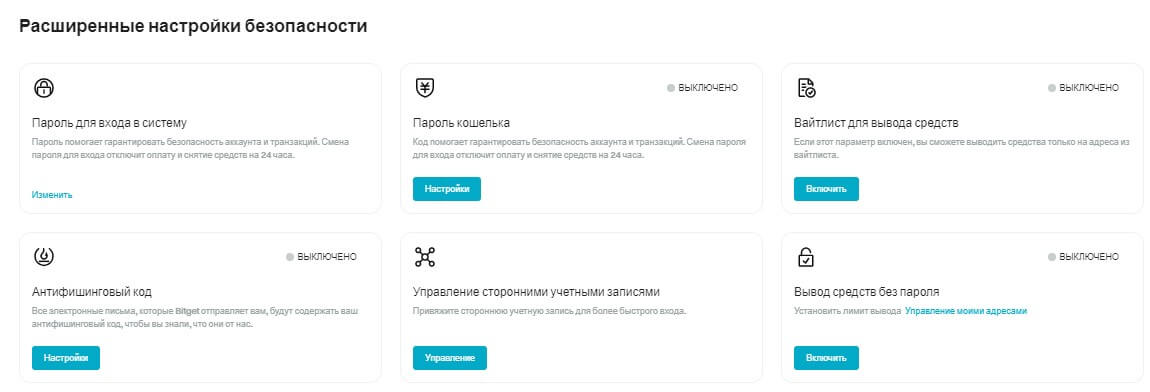 Также не стоит забывать и про дополнительные настройки: пароль для авторизации, пароль кошелька и прочее. Все они также обеспечивают защиту персональной информации, позволяют изменить платежные данные и т.п. Не стоит забывать их настраивать.