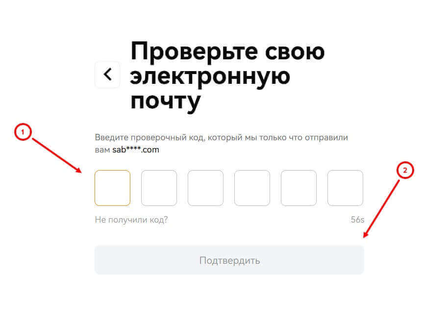 - Последний шаг – это подтверждение вашего Email или номера телефона. BloFin отправит вам код, который нужно будет ввести в соответствующее поле на сайте для завершения регистрации. Код может прийти с задержкой – обычно приходить в течение 5 минут. Затем нажмите на кнопку “Подтвердить”