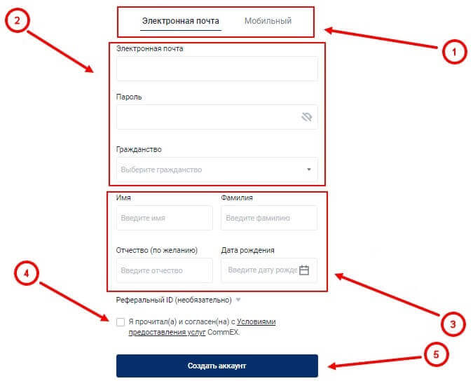 Регистрация CommEx: пошаговая инструкция на русском