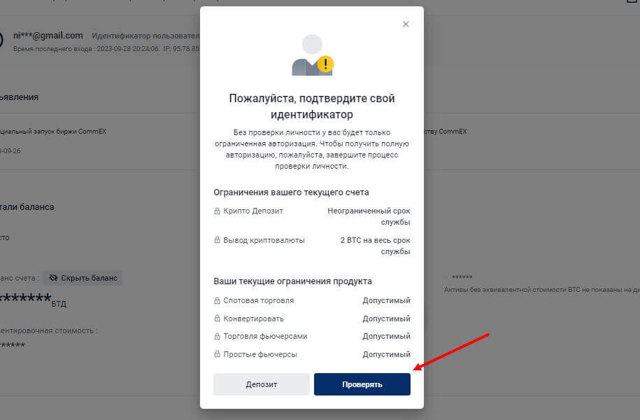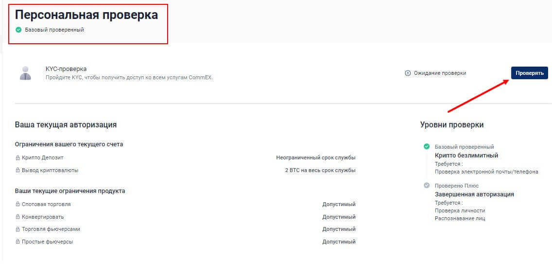 Верификация аккаунта на CommEx