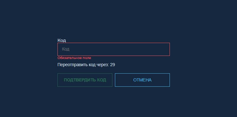 Далее, подтвердите свой аккаунт указав необходимый код, состоящий из латинских букв и цифр, который будет отправлен на вашу электронную почту, указанную при регистрации. Это обеспечивает дополнительный уровень безопасности для вашего аккаунта. Затем после ввода кода перепроверьте и нажмите на кнопку “Подтвердить код”.