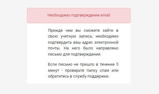 После регистрации появиться окно, где будет сказано о то, что перед входом в аккаунт нужно подтвердить адрес электронной почты.
