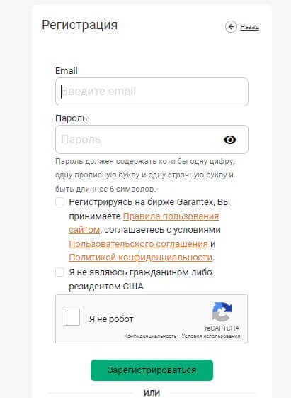 - Сложный пароль. Создайте уникальный и сложный пароль, сочетающий буквы, цифры и специальные символы. Рекомендуем не использовать одинаковые пароли, использованных на сайте сервиса Гарантекс и почтовых служб, чтобы обезопасить себя и свои активы.