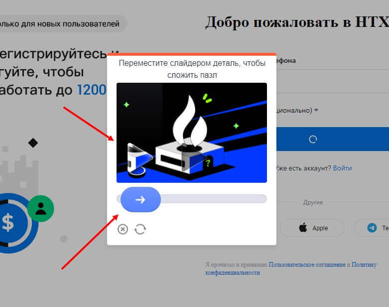 Затем пройдите пазл-капчу, перенеся недостающее изображение на картинке в нужное место для проверки на то, что пользователь не робот.