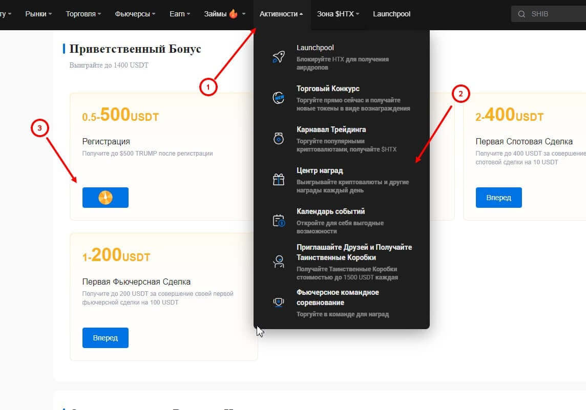 Как получить бонус от HTX?