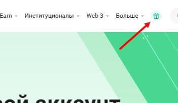 Пользователи могут получать как бонус без депозита, так и за торговлю на официально сайте на фьючерсном или спотовым рынках. Чтобы открыть раздел с бонусами, необходимо кликнуть на кнопку с изображением подарка в верхнем меню, после чего в новой странице откроется специальный раздел.