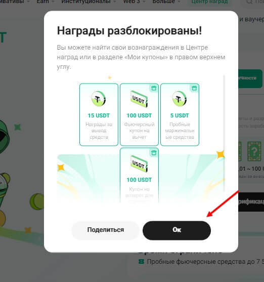 Вывод наград в виде живых токенов USDT доступна от 20 USDT. Средства поступят к вам на счет в течение 24 часов после запроса. Остальные бонусы (купоны) можно будет использовать сразу после получения.