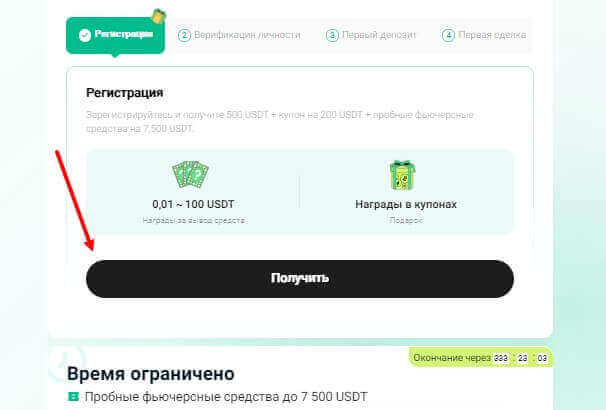 - кликнуть на кнопку “Получить”, после выполнения условий;