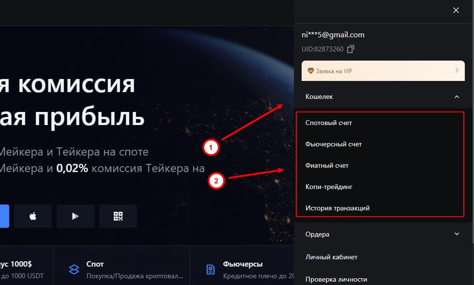 Как только пользователь скачает биржу на компьютер или apk файл на телефон, то откроется возможность не только пополнение средств с вашего собственного криптовалютного кошелька, а также проведение торговых операций на спотовом или фьючерсном рынках, но и также вести операции на P2P рынке.
