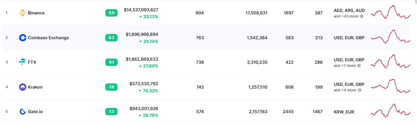 Не все криптовалютные биржи с высоким торговым оборотом предлагают трейдерам спотовую торговлю. При выборе сервиса лучше руководствоваться рейтингом спотовых площадок CoinMarketCAP: 3