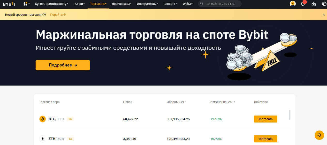 Торговля с кредитным плечом на криптовалютных биржах – простое, но весьма рискованное занятие, которое может нести как большие прибыли, так и убытки. Первым шагом в торговле – выбор криптовалютной биржи, которая предоставит вам эту услугу. Список криптовалютных бирж можно найти в нашем рейтинге по ссылке. Предлагаем вам пошаговую инструкцию того, как начать торговать на фьючерсном рынке с таким инструментом на Байбит (ByBit) в качестве примера.