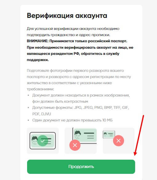 Откроется новая страница, где нужно прочитать информацию, ознакомится с порядком загрузки документов (формат и требования) после чего нажмите на кнопку “Продолжить”.