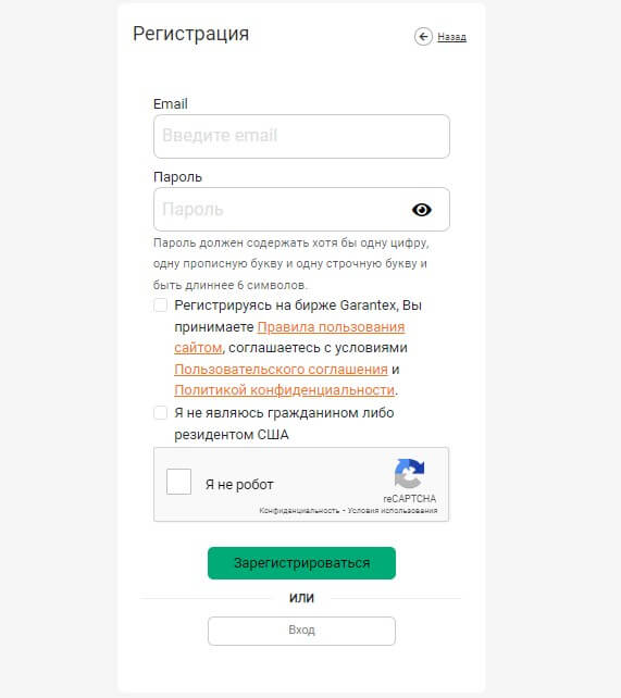 Первое, что следует сделать, пройти регистрацию в бирже криптовалют Garantex, перейдя на официальный сайт компании. Нажмите на кнопку “Регистрация” в правой верхней части страницы и введите необходимую информацию. Затем система автоматически авторизует и перенаправит в личный кабинет.