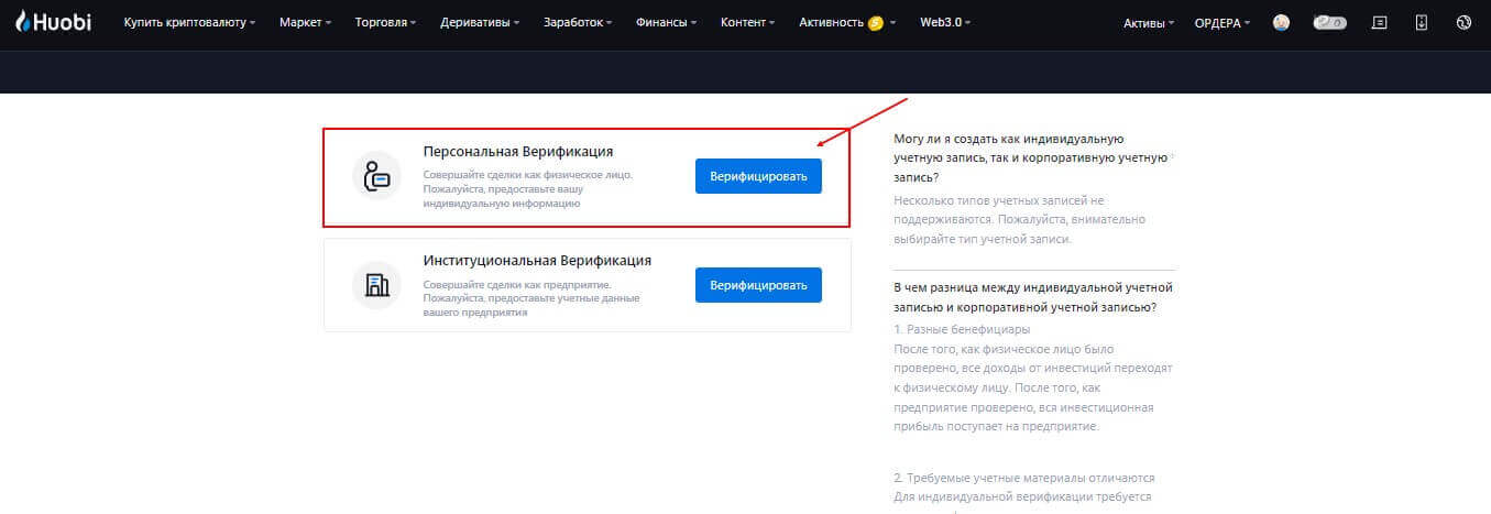 Верификация HTX (ex.Huobi) позволяет пользователям не только представиться перед системой, но и также позволит увеличить лимит на совершение сделок и открывает другие возможности для пользователя. Особенностями считаются следующие моменты: