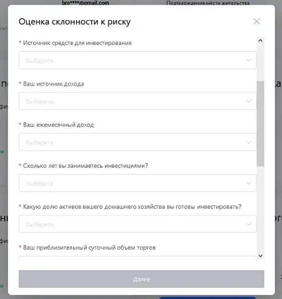 Однако следует заострить внимание на последнем пункте, который называется “Оценка Инвестиционного Потенциала”. В нем необходимо указать источники средств инвестирования, ваш основной источник дохода, его ежемесячный размер, опыт в инвестициях, какая доля может быть инвестирована, а также какой приблизительный суточный объем торгов делаете во время совершения сделок и так далее.