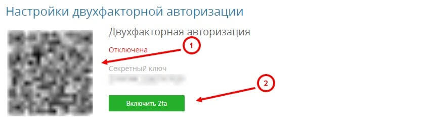 Затем следует нажать на кнопку “Включить 2fa”, предварительно записав секретный ключ. Пользователю необходимо подтвердить и нажать на кнопку “Я записал”.