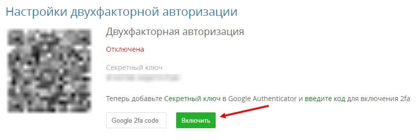 Последним шагом станет ввод специального кода – он находится в приложении двухфакторной аутентификации (2fa) Google Authenticator и произвести нажатие на кнопку «Включить”. Установка защиты собственного аккаунта завершена!