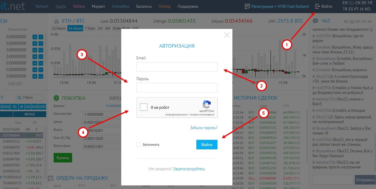 Каждый пользователь сможет войти, перейдя на официальный сайт торговой площадки, и введя регистрационные данные (адрес электронной почты и пароль), после чего нажмите на кнопку “Войти”.
