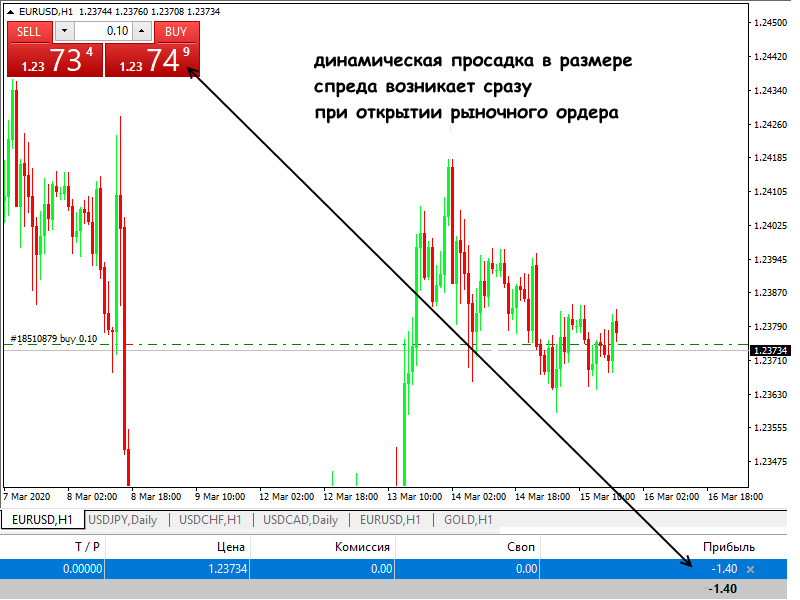 Простыми словами − реальный минус появляется только после закрытия ордера, а до этого момента мы видим в терминале динамический «минус», у которого есть шанс развернуться в прибыль.