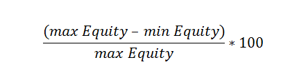 Рассчитывается как разница между текущим max и текущим min, причем используется не min за всю историю депозита, а самое меньшее (низкое) значение после максимального. Значение считается критически важным для анализа − чем меньше этот показатель, тем более консервативной и стабильной считается стратегия.