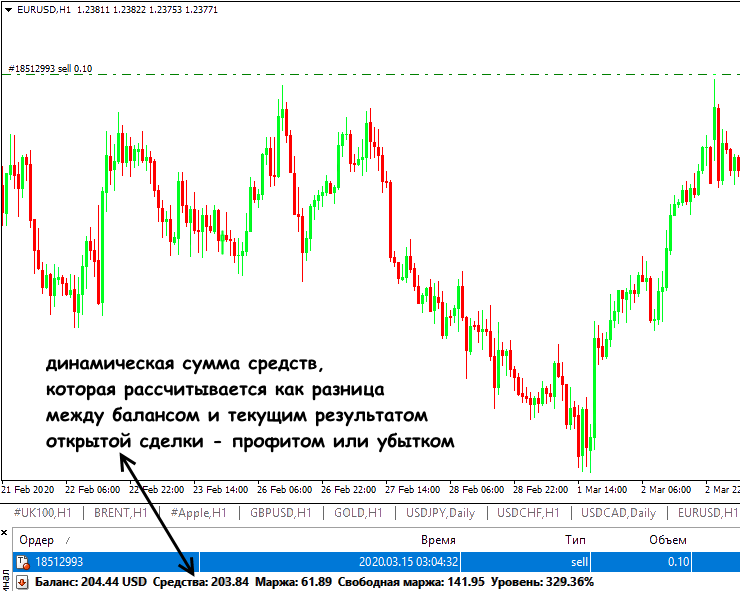 Термин применяется к открытым сделкам – так называют совокупный убыток по всем активным ордерам. Пока позиция не закрыта, всегда есть шанс, что рынок пойдет в прибыльном направлении, минус уменьшится или полностью компенсируется и сделка закроется с профитом. При негативном развитии ситуации динамический минус может увеличиться, в том числе и до margin call. Баланс депозита сохраняется, пока ордер не зафиксирован, а сумма средств (Equity) меняется в зависимости от текущего результата.
