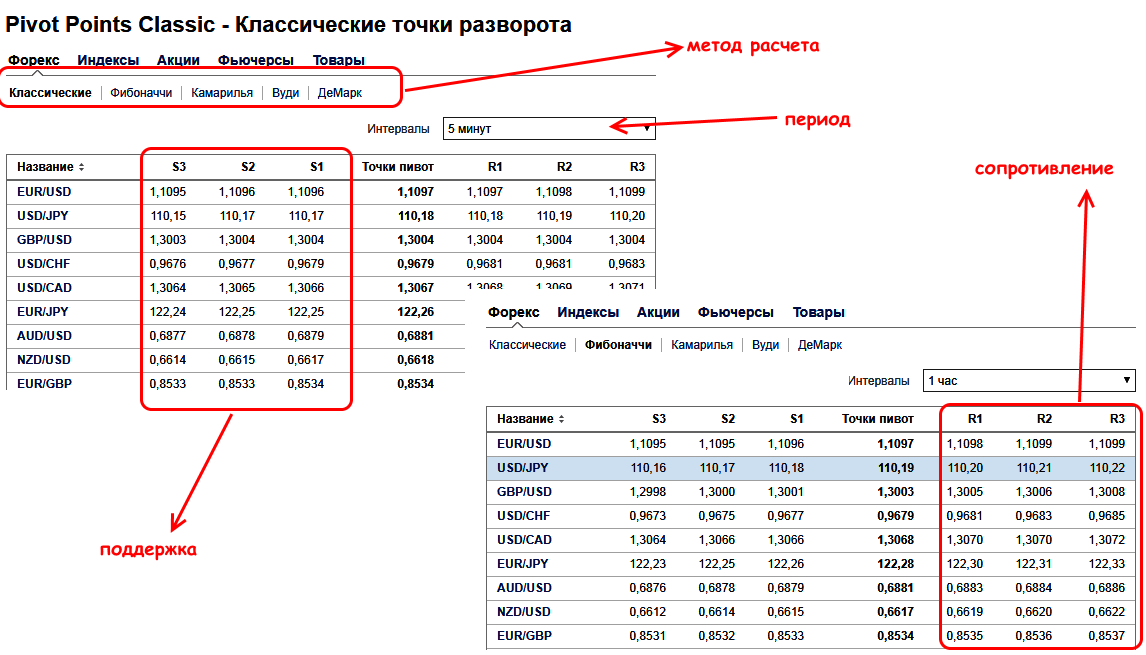 Линии Pivot помогут понять направление цены: предполагается, что выше Pivot находится зона перекупленности, ниже – перепроданности. Есть сильная вероятность разворота из этой зоны. Информацию можно брать по стандартному индикатору, но выгоднее использовать данные с внешних информационных ресурсов – там они систематизированы и обновляются, и ни какой брокер на это не влияет. Например, на ru.investing.com: