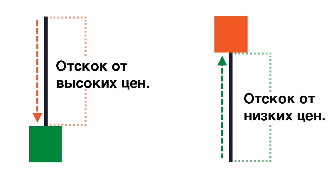 Один из немногих типов отображения биржевых интервалов, которые сочетают в себе как удобство графической составляющей, так и черты мощного инструмента анализа. Такой вид баров впервые появился у японских торговцев рисом, когда о биржевых трейдах не было и речи. Тогда уже торговцы принялись отображать формируемые ценовые графики, и со временем этот инструмент довольно плотно прижился в трейдинге. Каждая отдельная фигура, как и бар, отображает сразу четыре котировки для выбранного интервала — открытия и закрытия, максимума и минимума. Ниже это показано графически.