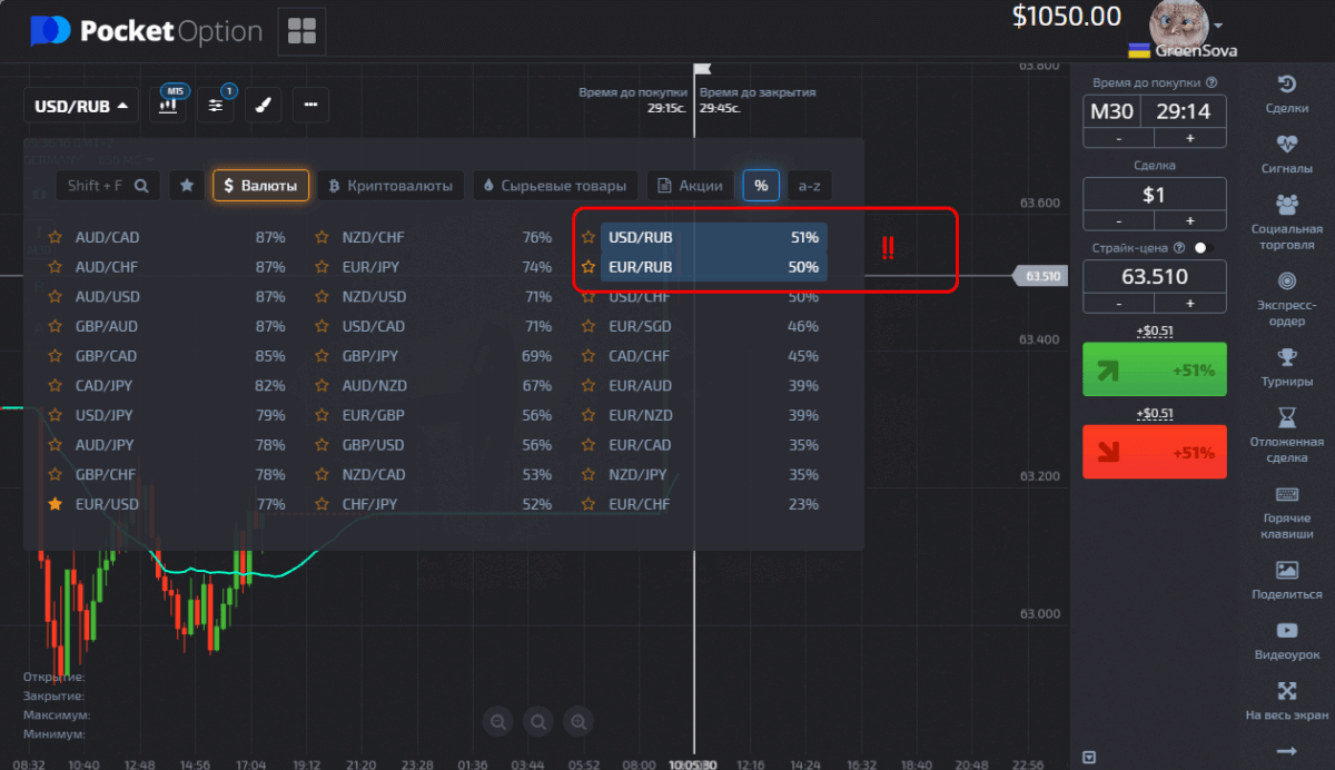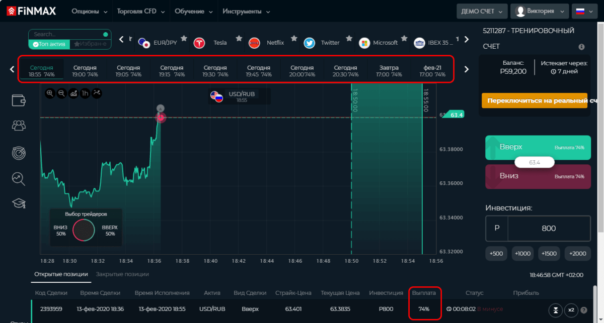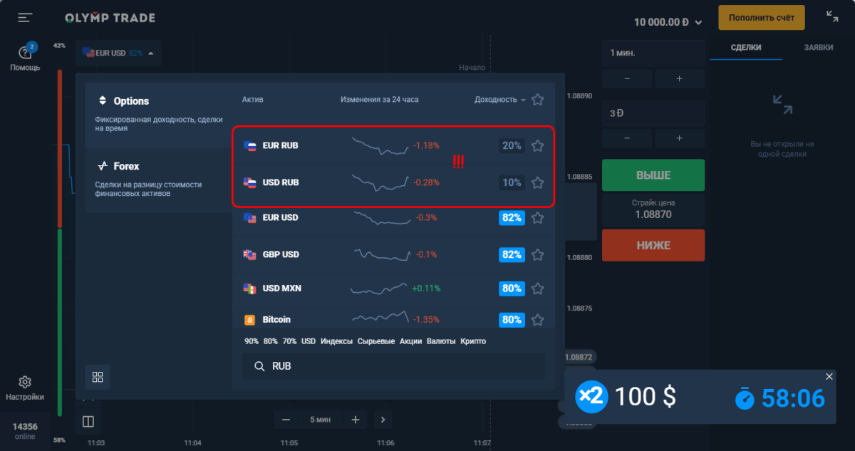 Сразу предупреждаем: по RUB-активам наиболее выгодна торговля опционами типа One Touch.