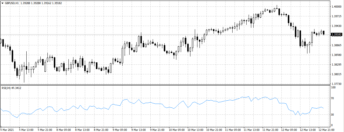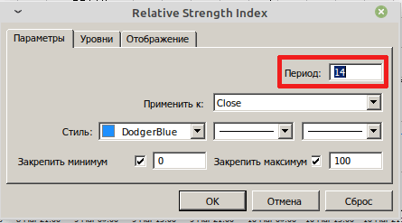 Основная линия формируется, отражая прямо пропорционально все восходящие колебания и обратно пропорционально трейды на понижение. В реальном времени без перерисовки RSI рассчитывает разницу между значениями открытия и закрытия за период 14 последних свечей на графике (стандартный параметр, может настраиваться индивидуально для каждого конкретного случая).