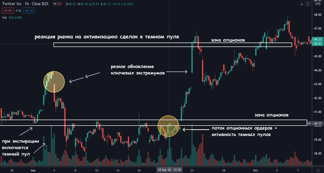 По данным SEC, более 40% объема фондовых сделок на биржах США выполняется в «темных пула» − darkpools. Их влияние чувствуют все, контролировать их невозможно, но учитывать их присутствие на рынке – обязательно.