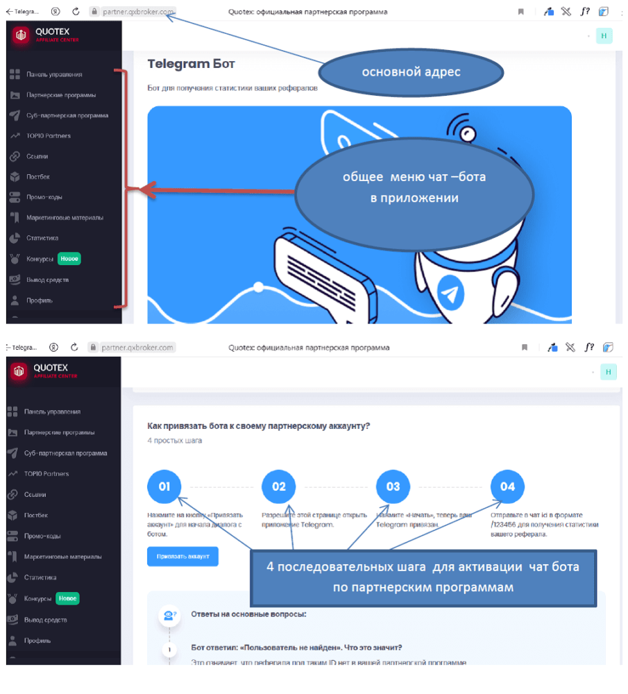 Все подробности смотри в личном кабинете партнера в разделе «Telegram Бот».